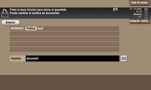 Toque [Guardar doc. memoria ext. en carp. usuario].