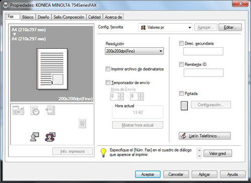 Si ha registrado los destinatarios que llaman más frecuentemente en el listín telefónico, puede llamar rápidamente al destinatario al enviar un fax. Utilice la ficha [Fax] del controlador del fax para agregar destinatarios a un listín telefónico.