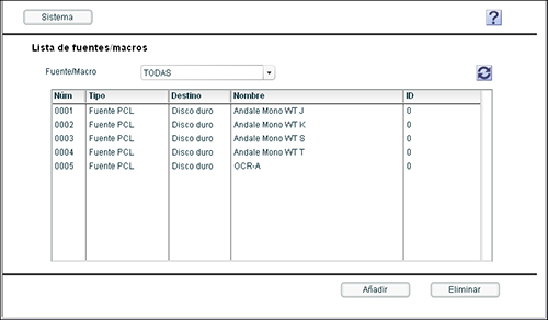 Aparece la lista de datos de fuentes y macros registrados en esta máquina.