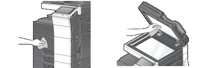 Pulse la marca de la mano que hay en el centro de la guía de apertura y cierre y compruebe que la guía de apertura y cierre está bloqueada.