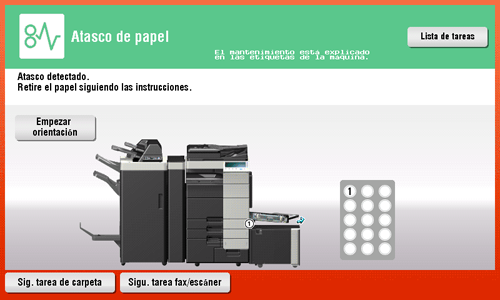 Es posible que haya papel atascado en otras secciones además de las indicadas en el panel táctil. Verifique las secciones que no se muestran en el panel táctil.