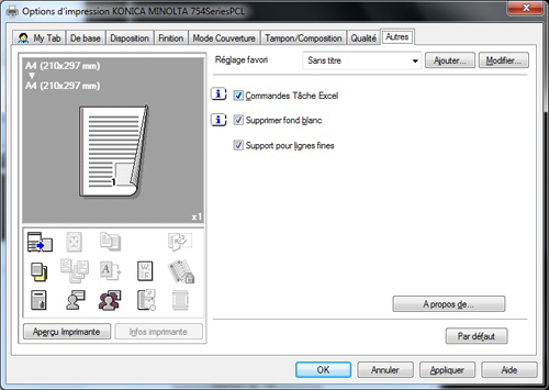 [Commandes Tâche Excel] est uniquement disponible en cas d'utilisation du pilote d'imprimante pour Windows.