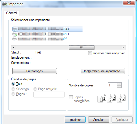 • La boîte de dialogue [Imprimer] diffère en fonction de l'application.