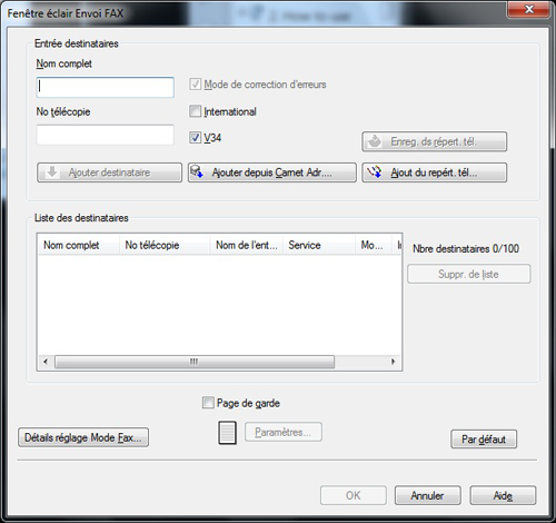 L'écran [Fenêtre éclair Envoi FAX] s'ouvre.