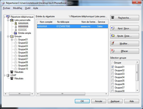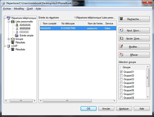 Le Répertoire téléphonique est enregistré en tant que fichier (au format CSV).