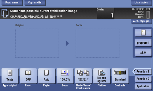 La stabilisation d'image est effectuée pendant qu'un grand nombre de copies est produit ou si la température ou l'humidité à l'intérieur de la machine a changé.