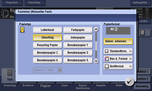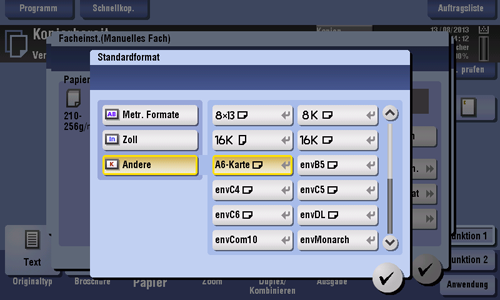 Wählen Sie unter [Papierformat] die Option [Standardform.] - [Andere] und geben Sie dann die Größe des eingelegten Umschlags an.