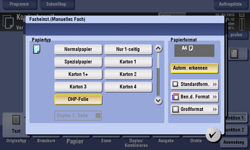 ] - [Facheinstellung ändern] - [Papiertyp] - [OHP-Folie] aus.