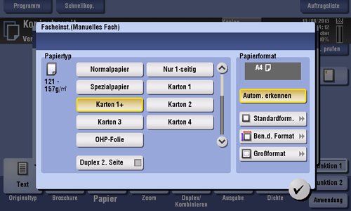 ] - [Facheinstellung ändern] - [Papiertyp] - [Karton 1+] aus.