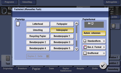 ] - [Facheinstellung ändern] - [Papiertyp] - [Indexpapier] aus.