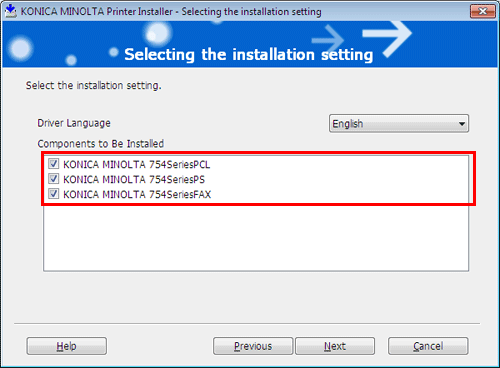 Seleccione la casilla de verificación del controlador de impresora que desee instalar y, a continuación, haga clic en [Siguiente].