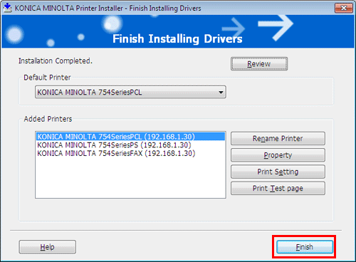 Cambie el nombre de la impresora o imprima una página de prueba si es necesario y, a continuación, haga clic en [Finalizar].
