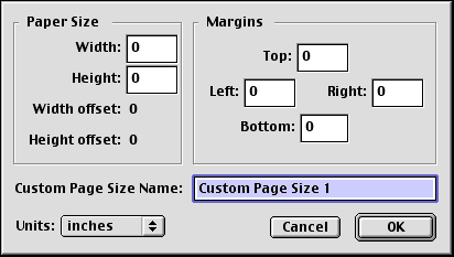 Para imprimir en papel de tamaño personalizado, seleccione [Custom Page Sizes] en la ventana [Page Setup] y, a continuación, registre el tamaño de papel. El tamaño registrado puede seleccionarse en [Paper:], en [Page Attributes].