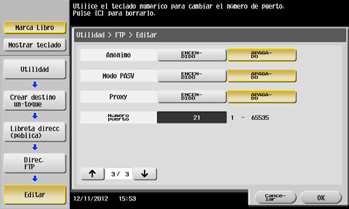 • También puede registrar un destino FTP mediante Web Connection. Para obtener más información, consulte Aquí.