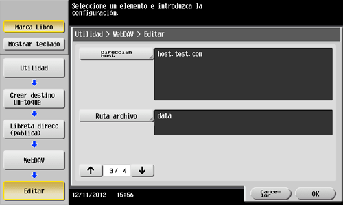 Registre nombres de host del servidor WebDAV de destino o direcciones IP. Registre también una carpeta para guardar un archivo o información de la cuenta.