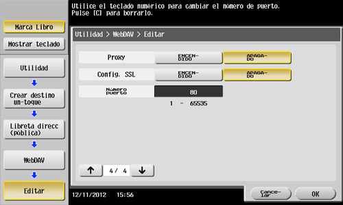 • También puede registrar un destino WebDAV mediante Web Connection. Para obtener más información, consulte Aquí.