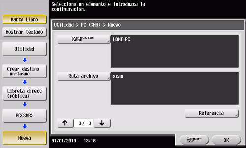 • También puede registrar un destino SMB mediante Web Connection. Para obtener más información, consulte Aquí.