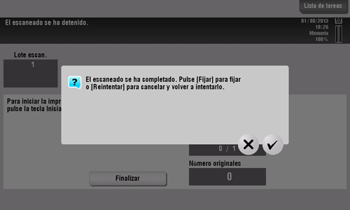 Una vez escaneados todos los originales, toque [Finalizar] y pulse la tecla Inicio.