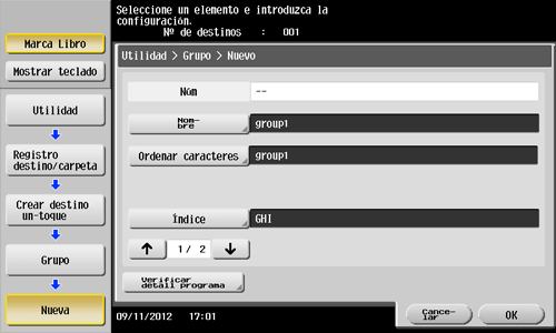 [Nombre] | Introduzca el nombre de registro para el destino de grupo. Puede escribir hasta 24 caracteres. |