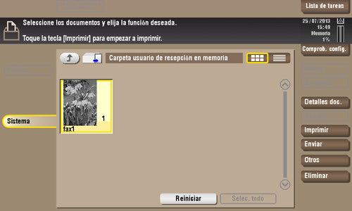 El fax se imprime y se elimina automáticamente de la carpeta de usuario de recepción en memoria.