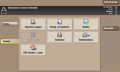 Seleccione [Ajustes de fax] - [Ajustes función] - [Configuración de recepción en memoria].
