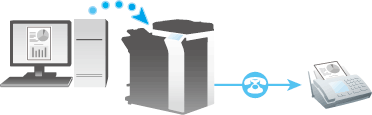 Dentro de la intranet, es posible utilizar la función de fax por dirección IP. En el caso de Fax por dirección IP, especifique o bien la dirección IP, el nombre de host o bien la dirección de correo electrónico de la máquina de fax de destino para enviar directamente un fax a este destino. No se requiere un servidor de correo.