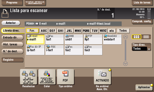 Configure el destino y modifique los ajustes para las funciones Fax/Escáner.