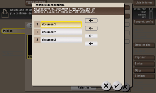 Cambie el orden de los archivos para imprimir o enviar según sea necesario y, a continuación, toque [Aceptar].