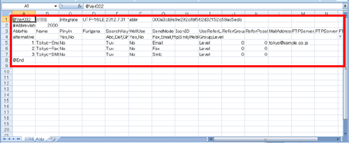 Al importar [Dirección], si selecciona [En las actualizaciones que contienen solo número de registro, dejar tal cual los datos originales de la dirección.], la información de dirección, incluida en un archivo que se va a importar, que contenga solamente un número de registro, no se registra en la máquina. Si selecciona [En las actualizaciones que contienen solo número de registro, eliminar los datos originales de la dirección y el número de registro.], la información de dirección que contenga solamente un número de registro se elimina de la máquina.