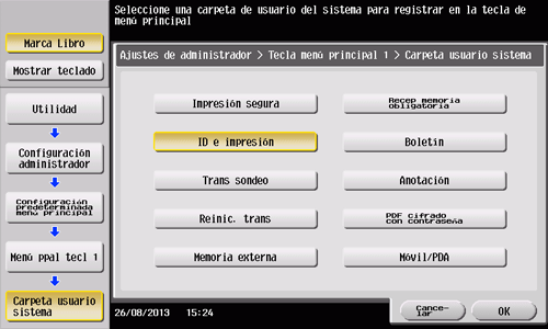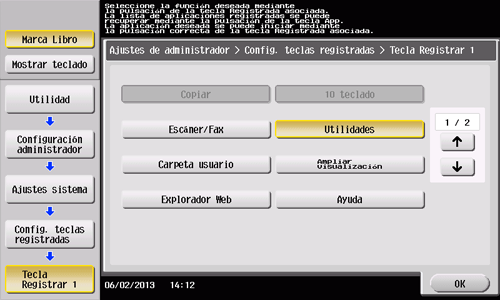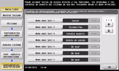Seleccione [Ajustes sistema] - [Config. teclas registradas].