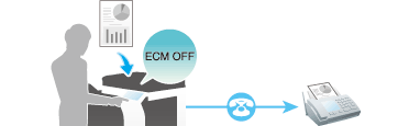 De manera predeterminada, esta máquina utiliza ECM para la transmisión. Si el nivel de ruido es elevado, la comunicación puede tardar más que cuando no se utiliza la comprobación ECM. Para reducir el tiempo de transmisión, puede transmitir faxes con la opción ECM desactivada. No obstante, puede producirse un error de imagen o comunicación en función del valor de la hora de comunicación especificado; por ello, cambie el valor según las condiciones.