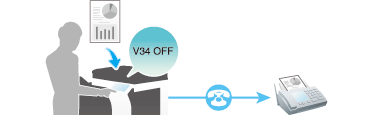 Esta máquina utiliza el protocolo de comunicación V.34 de manera predeterminada. Puede enviar faxes con la opción V34 cancelada si no es posible establecer comunicación en el modo Super G3 según las condiciones de la línea telefónica (por ejemplo, el equipo remoto o esta máquina se conecta a una línea telefónica mediante PBX).