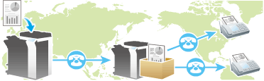 El coste general de las comunicaciones se puede reducir agrupando las estaciones de retransmisión y los destinos por zona, en comparación con el coste de difusión de faxes a todos los destinos. Esta función es útil para la difusión de faxes a ubicaciones lejanas.