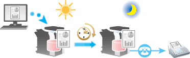 • Cuando envíe un fax utilizando un temporizador, asegúrese de que la hora ajustada en el ordenador coincide con la hora ajustada en esta máquina. Si la hora actual ha pasado la hora del Temporizador de transmisión, el fax se envía al día siguiente.
