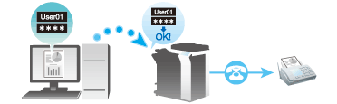 Si ya se han empleado la autenticación de usuario y el seguimiento de cuenta, cada usuario necesita enviar su información de autenticación (el nombre de usuario y contraseña) a esta máquina al enviar PC-Fax. Esto limita a los usuarios que pueden enviar PC-Fax a través de la máquina y evita el uso no autorizado de terceros.