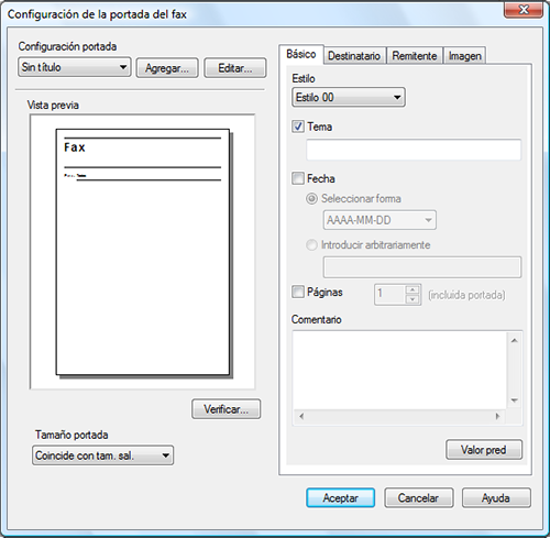 1. Abra la pantalla [Ventana emergente transmisión fax] y seleccione la casilla de verificación [Portada].
