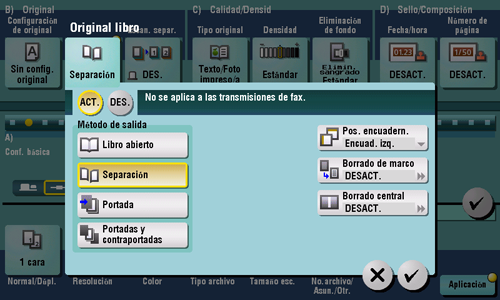 [ACT.]/[DES.] | Seleccione [ACT.] para especificar Original libro. |