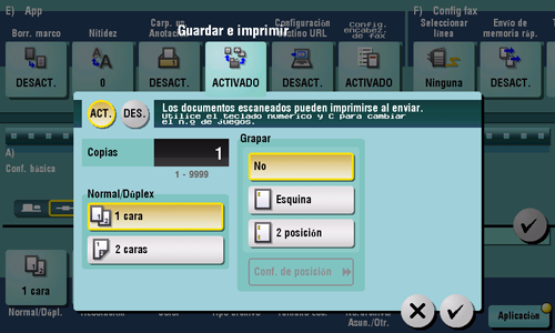 [ACT.]/[DES.] | Seleccione [ACT.] para enviar e imprimir al mismo tiempo. |