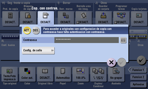 [Cop. con contras.] | Especifique el contrato de un patrón de protección de copia con contraseña si es necesario. | |