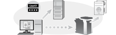 Dado que se requiere la autenticación en esta máquina para imprimir los datos guardados en la carpeta, la función es adecuada para imprimir de forma segura documentos confidenciales. Una vez realizada la autenticación, los datos de impresión del usuario que ha iniciado sesión se imprimen de forma automática. Esto optimiza la seguridad y garantiza un funcionamiento sin problemas.