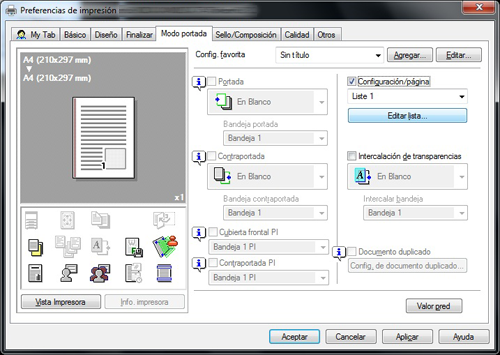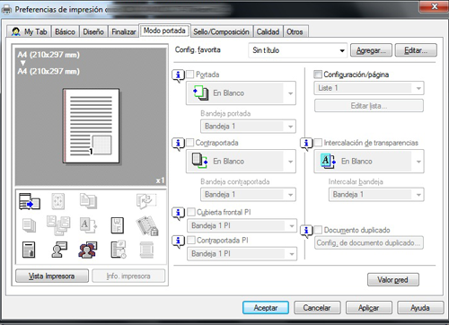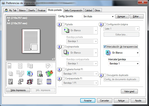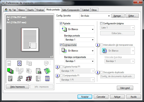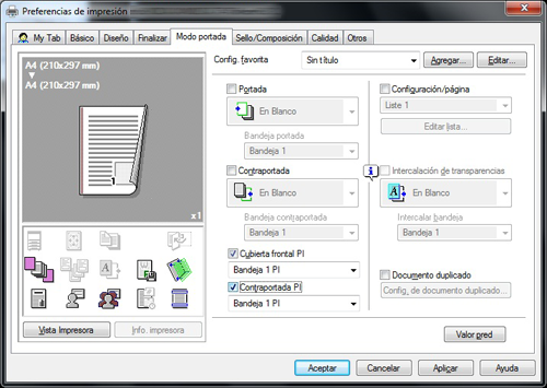 En la ficha [Modo portada], seleccione la casilla de verificación [Documento duplicado].