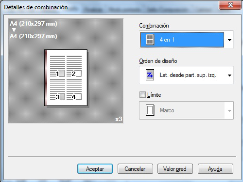 Si es necesario, haga clic en [Detalles de combinación...] para ajustar el orden de diseño de página y para establecer si deben introducirse o no líneas de borde entre páginas.