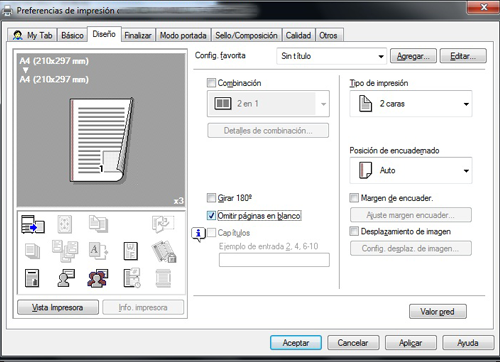 La opción [Omitir páginas en blanco] está disponible solo cuando se utiliza el controlador de impresora para Windows.