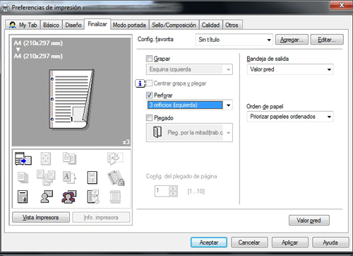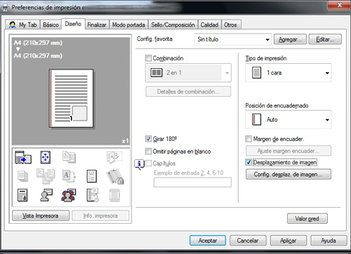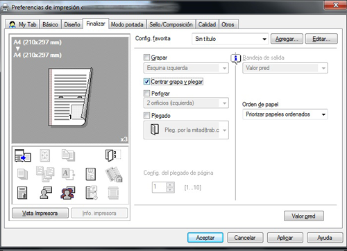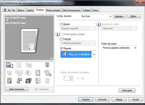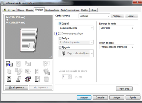 Es posible imprimir varias páginas de tamaño reducido en la misma cara de una sola hoja para reducir el número de páginas que deben imprimirse.