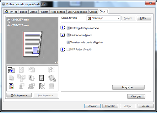 La opción [Visualizar vista previa al imprimir] está disponible solo cuando se utiliza el controlador de impresora para Windows (XPS).