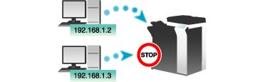Puede especificar los ordenadores que podrán o no acceder a esta máquina en función de la dirección IP. Esta función permite restringir el acceso a una ubicación no especificada.