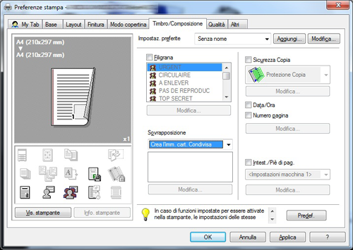 [Overlay] è disponibile solo quando si usa il driver di stampa di Windows.