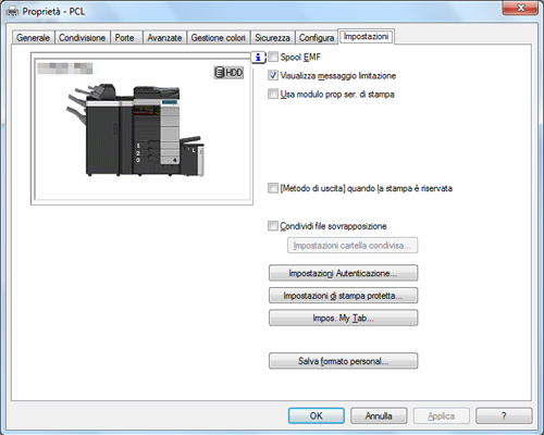Visualizzare la finestra [Proprietà] del driver di stampa.