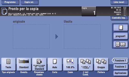È possibile disporre un tasto in cui è registrata una combinazione delle impostazioni di finitura (programma finitura) nella schermata principale del modo copia. Se si dispongono la combinazione usata di frequente delle impostazioni di finitura come tasto di richiamo, sarà utile specificare l'impostazione con una singola azione sul tasto.