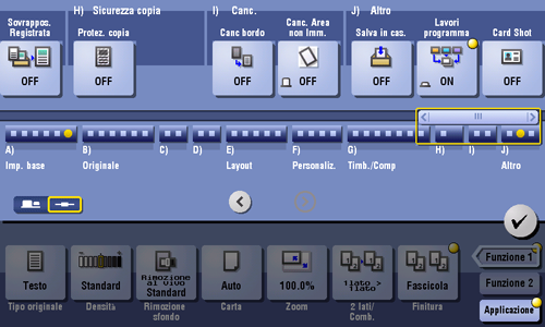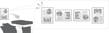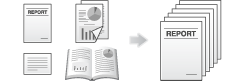 Gli originali sono scansionati in base a diverse impostazioni per ogni set e copiati in maniera collettiva. Utilizzare questa funzione quando vari tipi di originali sono misti, come originali 1 lato da stampare su un lato della carta e originali 2 lati da copiare con ingrandimento. Una volta scansionati tutti gli originali, è possibile aggiungere i numeri di pagine o le funzioni di finitura, come fascicola, per copiarli.